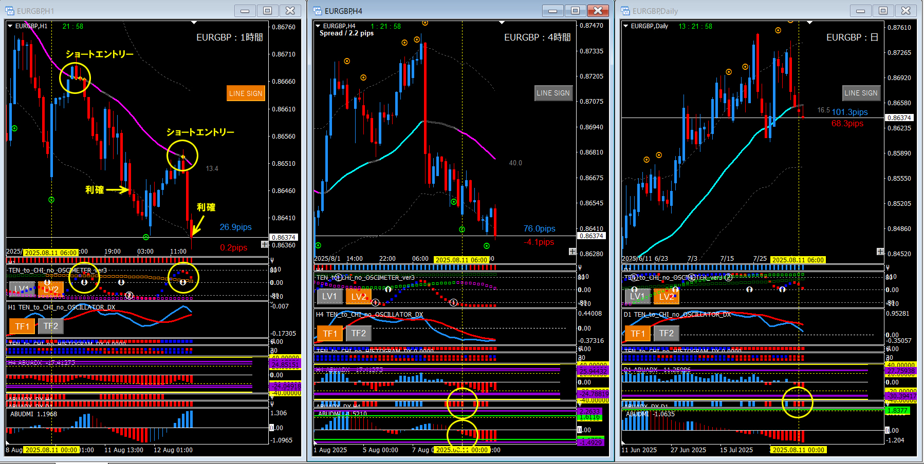 ユロポン(EURGBP)/ 1時間足+4時間足+日足 過去検証