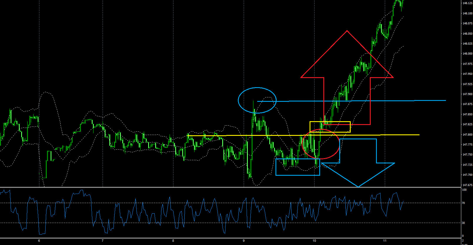 今朝のドル円は、1時間・1分足とも10時前までレンジでした。