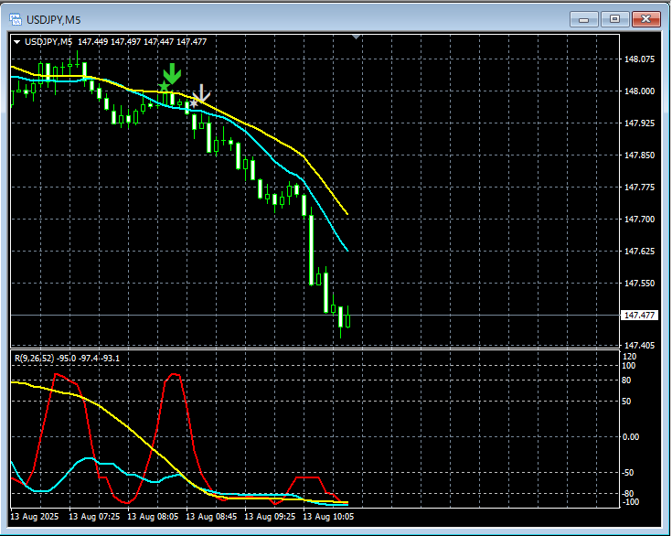 質実剛健FX【RCIを極めて勝つ!!】mBDSR(移動平均線フィルター)とR1R2S2のサインの両方を活用する(17) ドル円 5分足