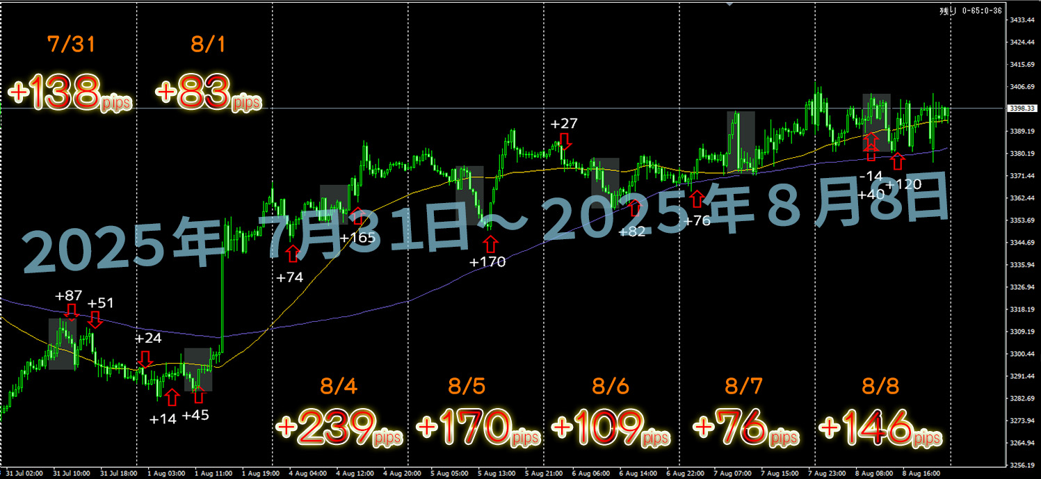 先週+740pips!8/4~8/8の部分をご覧ください。