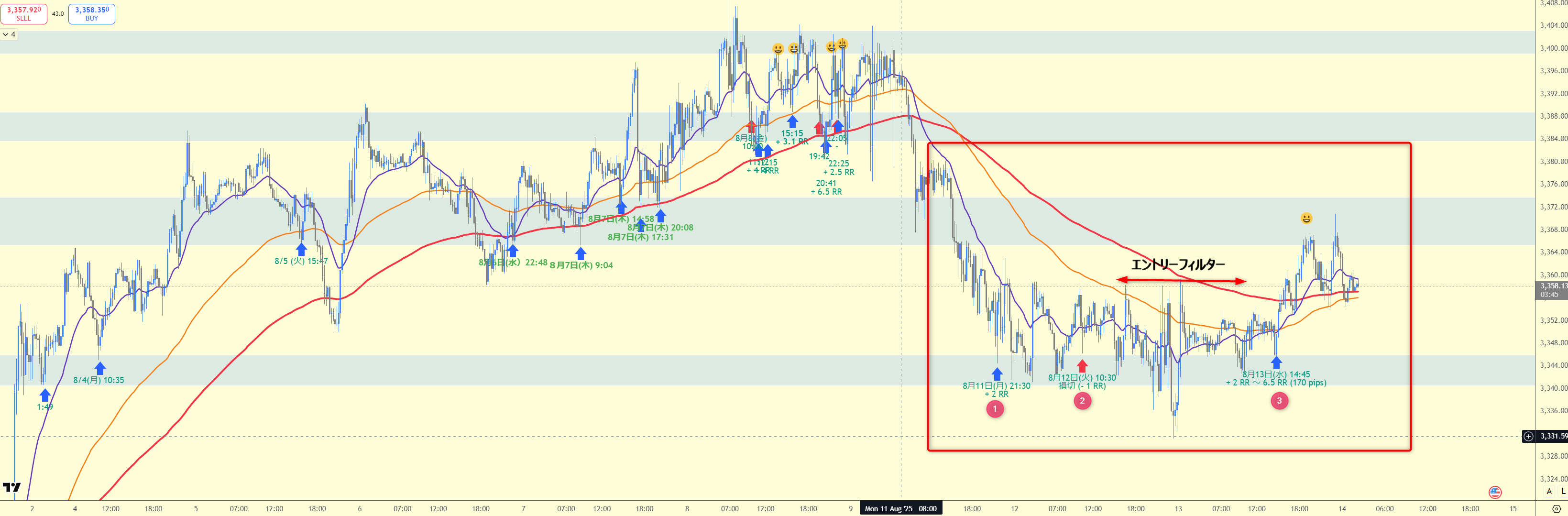 リアルトレード (ゴールド) 2025年8月11日(月)~13日(水) トレードポイント紹介 (2勝1敗)