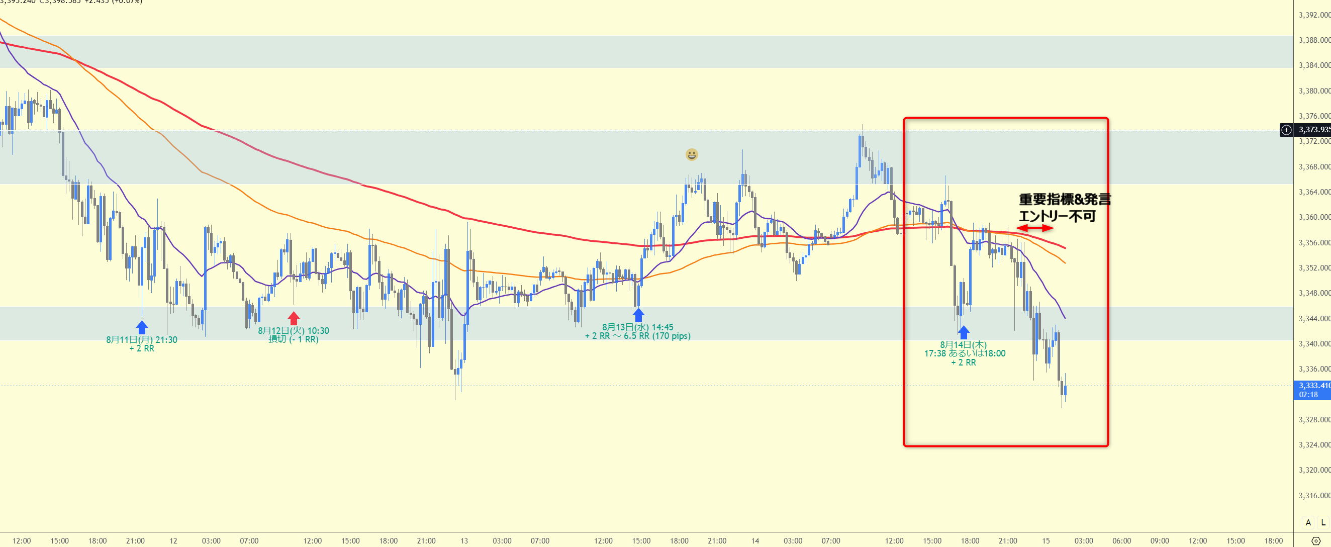 リアルトレード (ゴールド) 2025年8月14日(木) トレードポイント紹介 (1勝 /+ 2 RR)