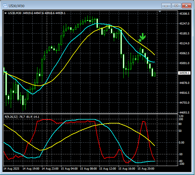 質実剛健FX【RCIを極めて移動平均線フィルターで勝つ!! ダウ平均 US30 30分足】mBDSRの戻り売りサイン