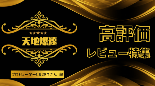 プロトレーダーlucky様、天地爆速を御提供頂き、本当にありがとうございます。この僕が1分足スキャルピングで勝てるとは! 夢みたいです。本当にトレードスキルがない僕でも使える最高のインジケーターサインツールです。サインが出るタイミングも本当に早いです。助かっています。プロトレーダーlucky様には、本当に感謝しています。ありがとうございます。