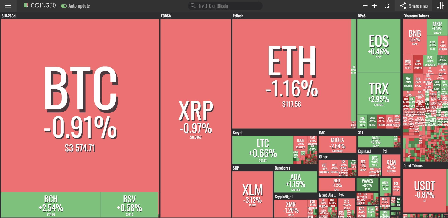 coinmarketcap(コインマーケットキャップ)のサイトから、ドミナンス(各銘柄が仮想通貨全体の時価総額に占めるパーセンテージ)を定点観測していきます。仮想通貨全般が下方向に大きく動き出している相場状況を受け、毎日更新することとし、仮想通貨業界を俯瞰および転換期を早期に発見することを目的とします。