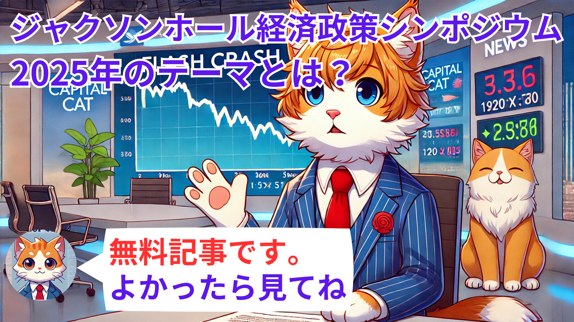 こんにちは、キャピタルキャットです!ジャクソンホール会議についての詳細をお話ししますね。この会議は経済政策に関する重要なフォーラムであり、毎年金融市場の関係者から注目されています。