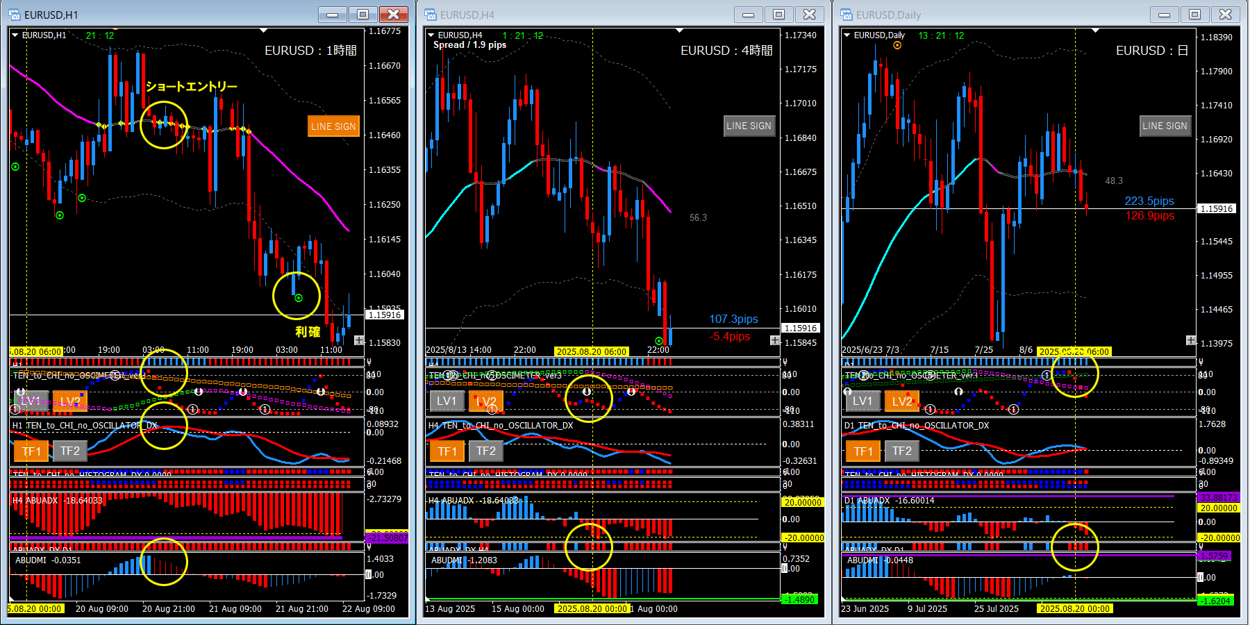 【2025年8月22日】天と地のインジケーターのデイスイング手法検証(ユロドル)