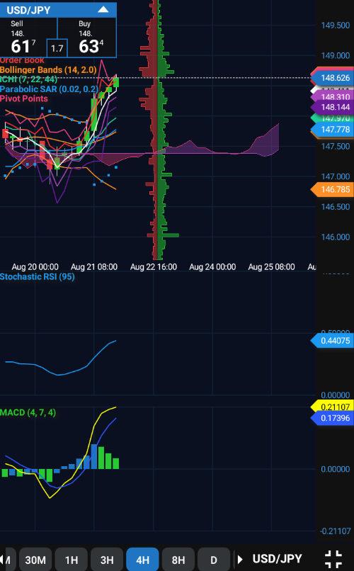 先週は、4Hが動きました。それから、1Hでアジャストがあってから落下して行ったように思います。