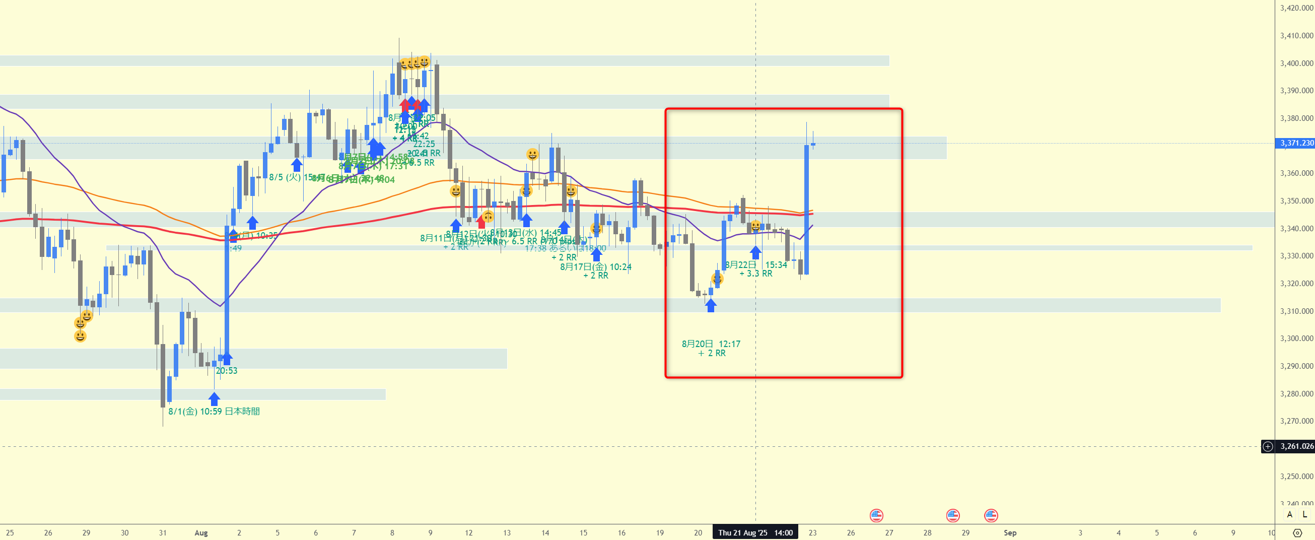 2025年8月18日週のトレードポイント振り返り ( 2勝0敗 / + 5.3 RR )
