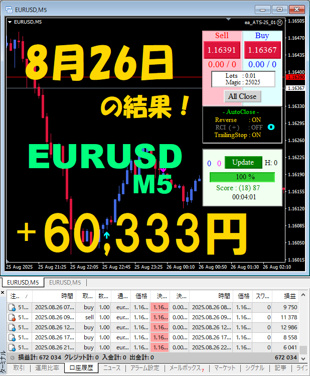 【前日の結果】EURUSD M5 『ATS-25』8月26日