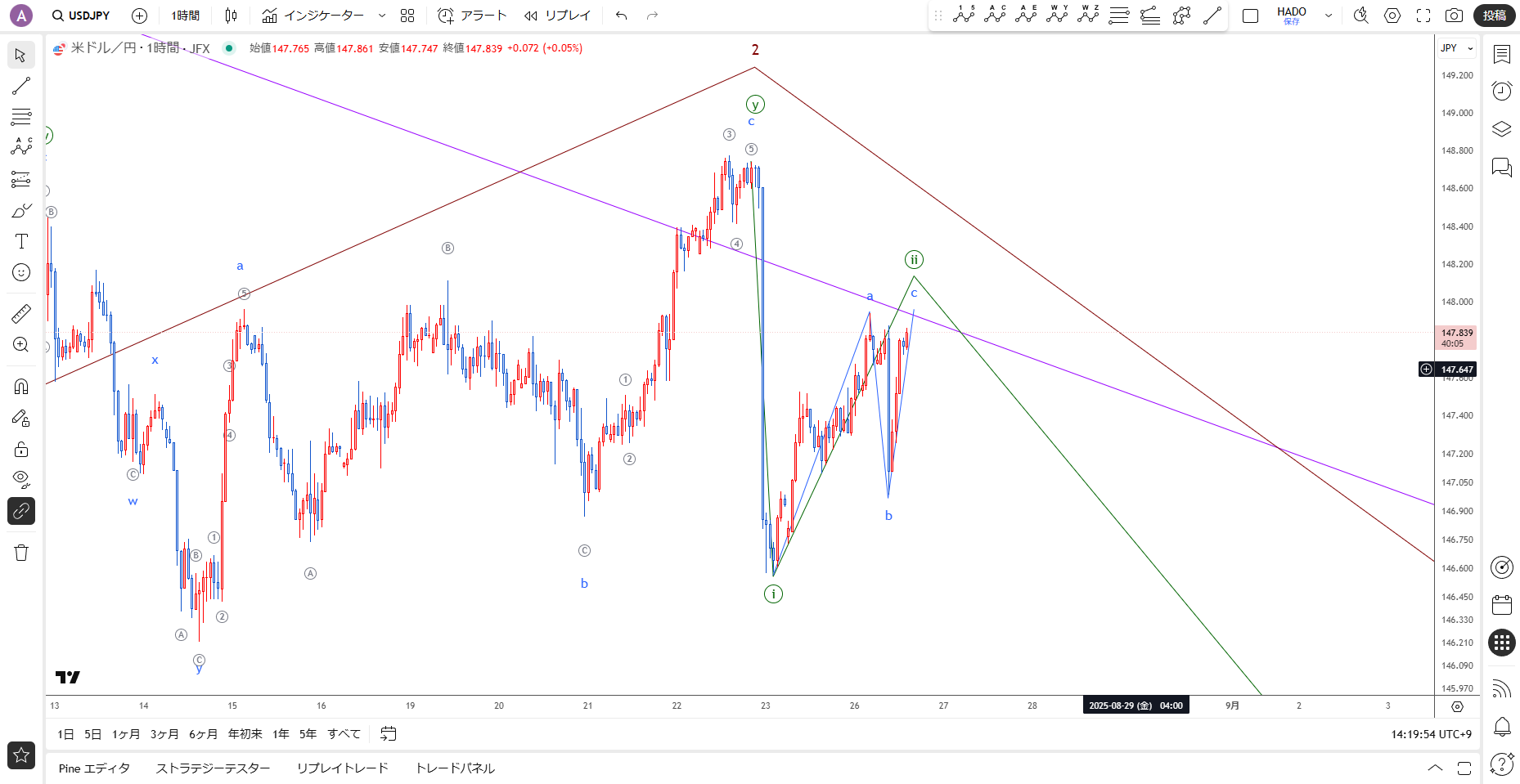 【昨日の上昇はあくまで一時的な戻り】8月26日(火)ドル円のエリオット波動分析