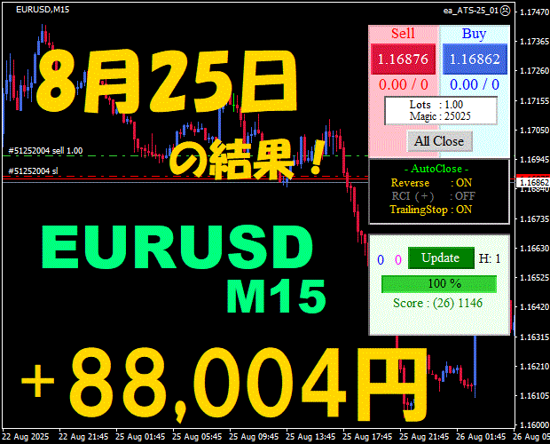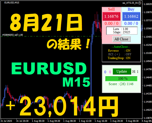 【EURUSD M15】前日の結果『ATS-25』 8月28日