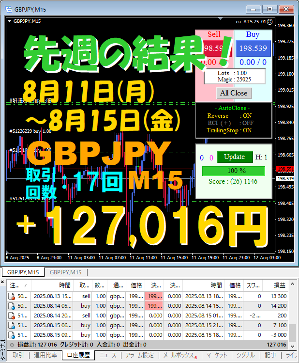M15 週間報告!【GBPJPY】ATS-25 ☆8月11日(月)~8月15日(金)