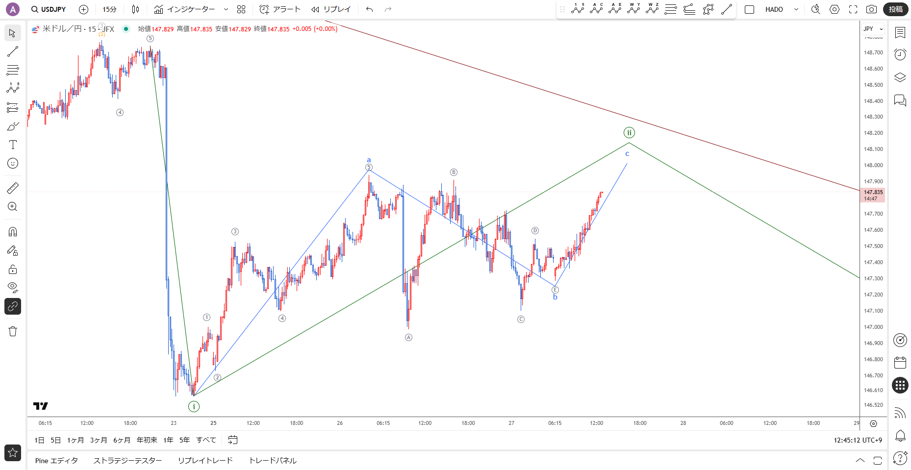 【ややこしい動き】8月27日(水)ドル円のエリオット波動分析