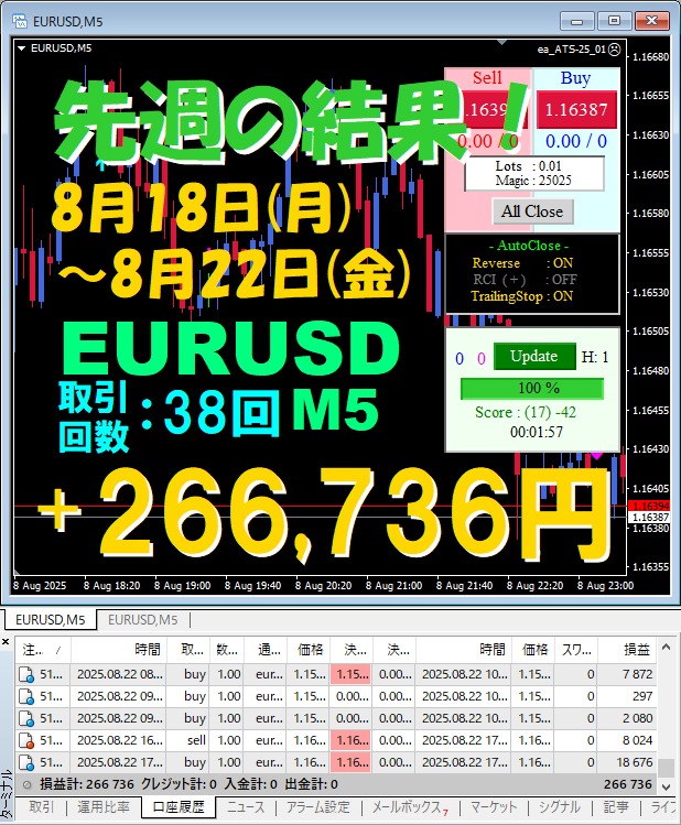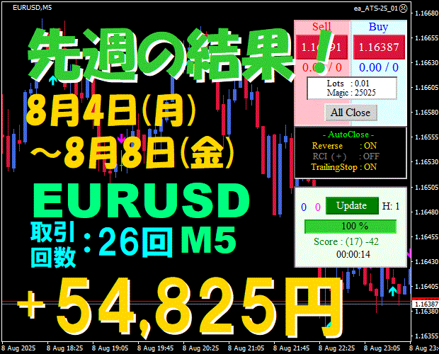 【先週の結果】EURUSD M5 『ATS-25』8月18日(月)~8月22日(金)