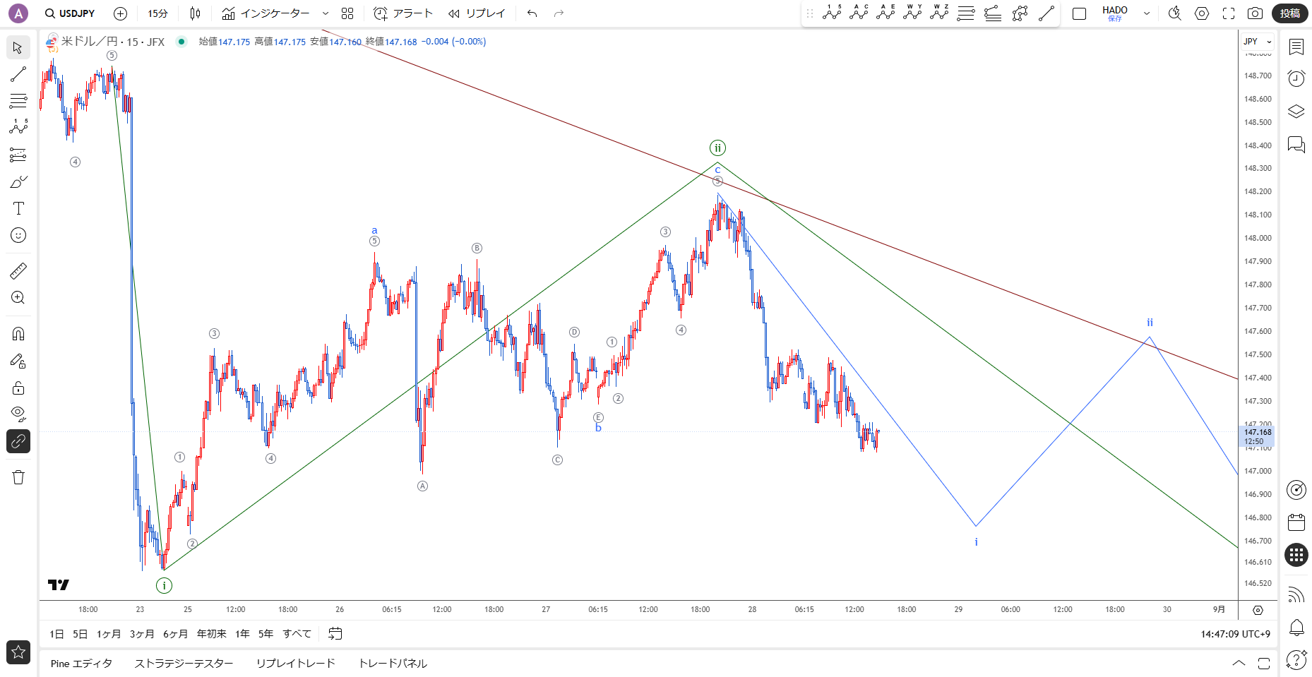 【昨日の想定通り】8月28日(木)ドル円のエリオット波動分析