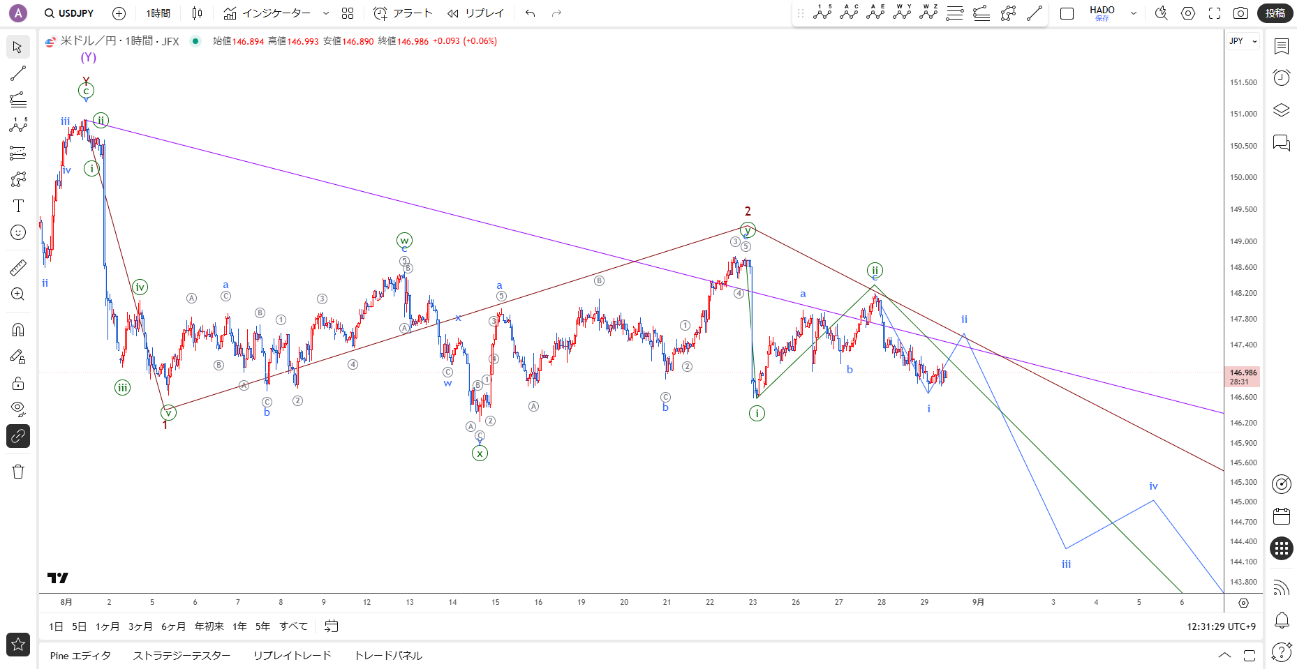 【シナリオ通り進行中】8月29日(金)ドル円のエリオット波動分析