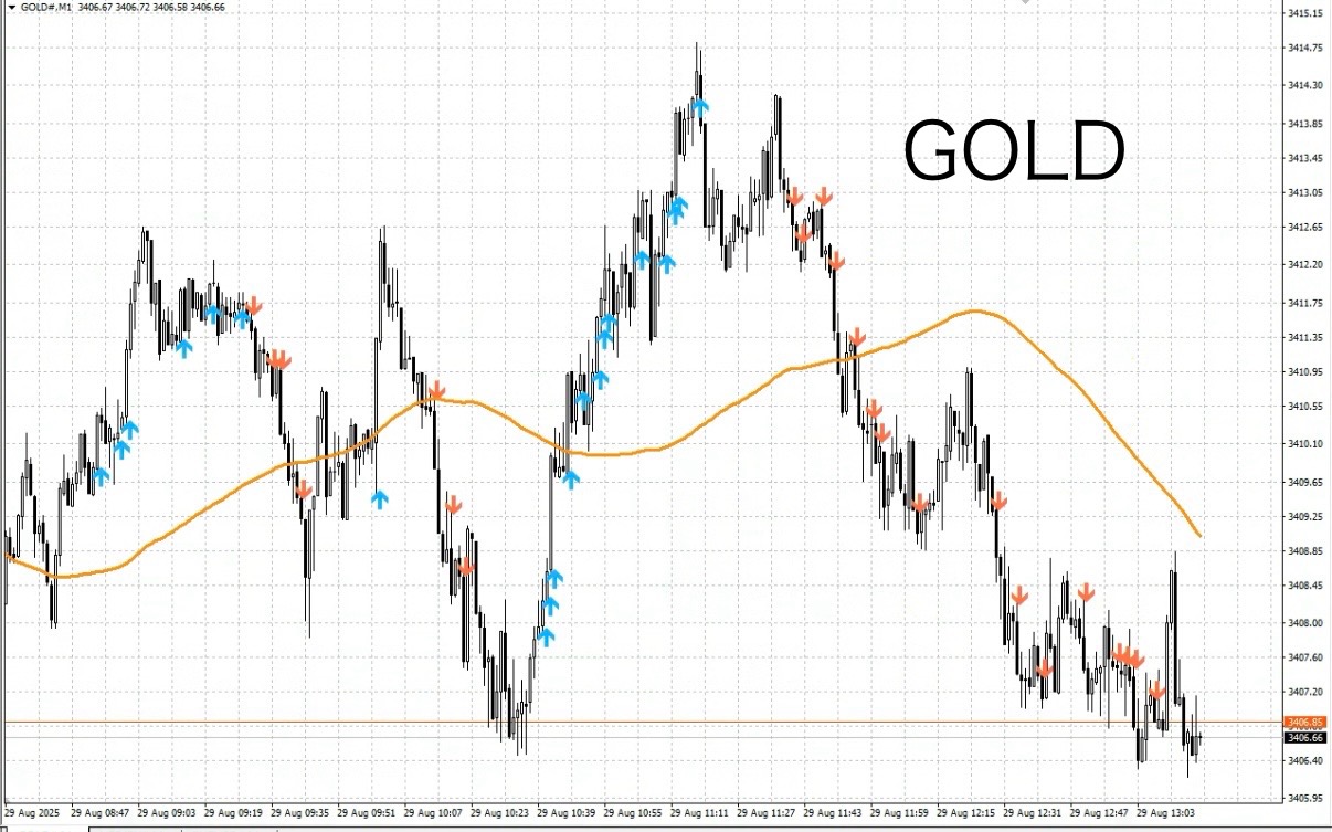 【雲海UNKAI】実例:8/29 19時30分/GOLD1分足のチャートのコピー