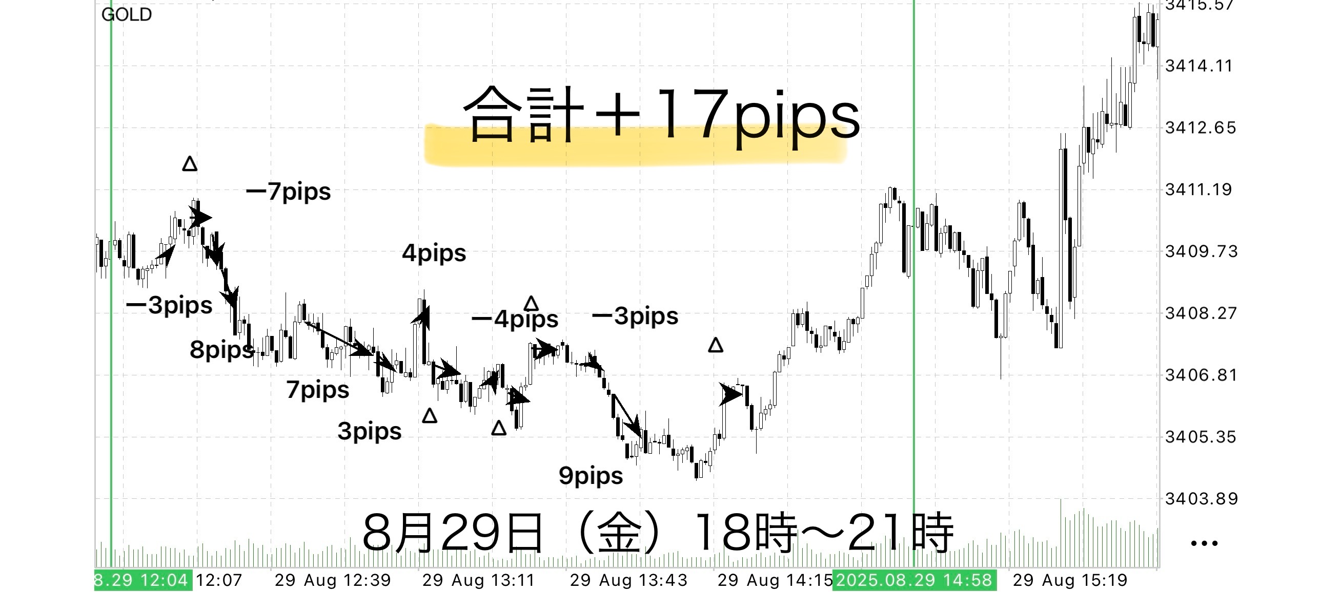 そのため、結果としては「細かいトレードを積み重ねる」一日となり、大幅な値幅を取る場面はありませんでした。