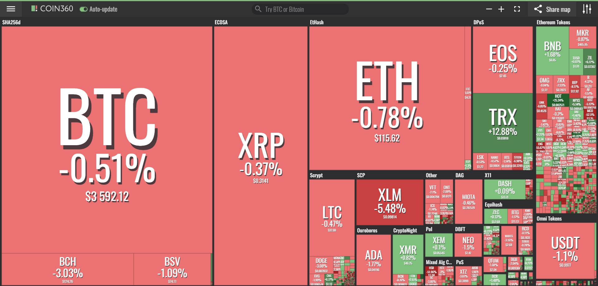 coinmarketcap(コインマーケットキャップ)のサイトから、ドミナンス(各銘柄が仮想通貨全体の時価総額に占めるパーセンテージ)を定点観測していきます。仮想通貨全般が下方向に大きく動き出している相場状況を受け、毎日更新することとし、仮想通貨業界を俯瞰および転換期を早期に発見することを目的とします。