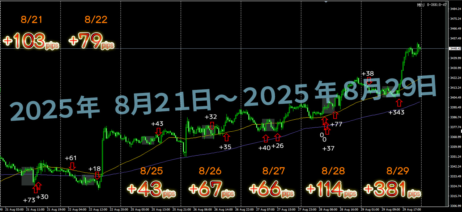先週+671pips!8/25~8/29の部分をご覧ください。