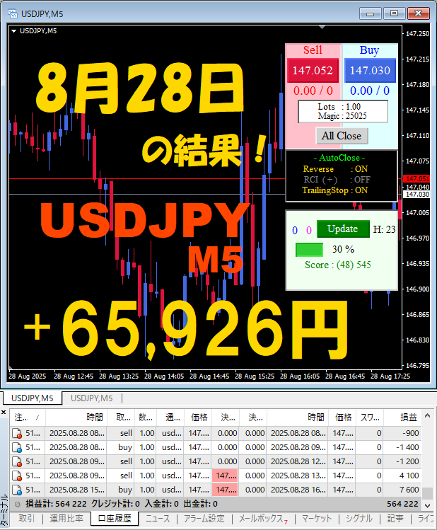 【前日の結果】USDJPY M5 『ATS-25』8月28日