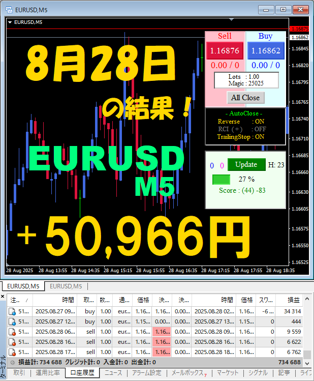 【前日の結果】EURUSD M5 『ATS-25』8月27日