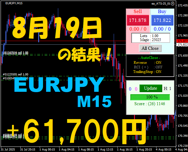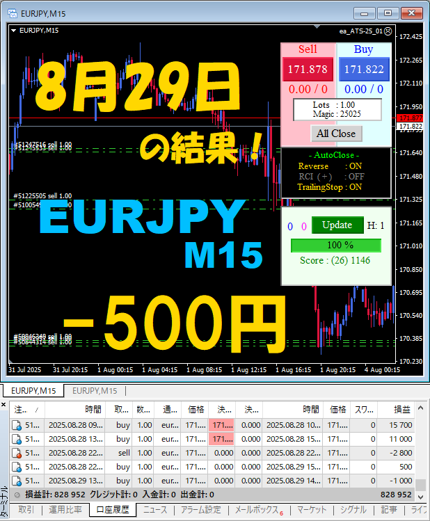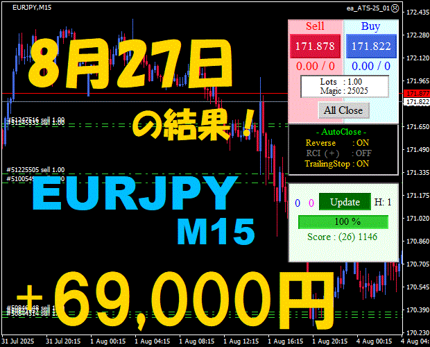 【EURJPY M15】前日の結果『ATS-25』 8月29日