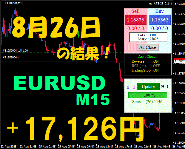 【EURUSD M15】前日の結果『ATS-25』 8月28日