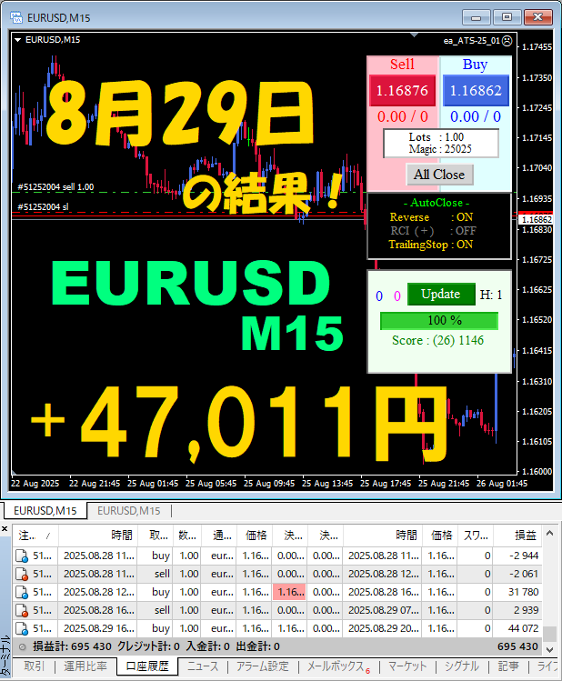 【EURUSD M15】前日の結果『ATS-25』 8月29日