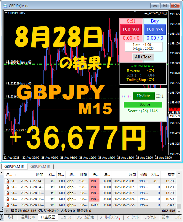 【GBPJPY M15】前日の結果『ATS-25』 8月28日