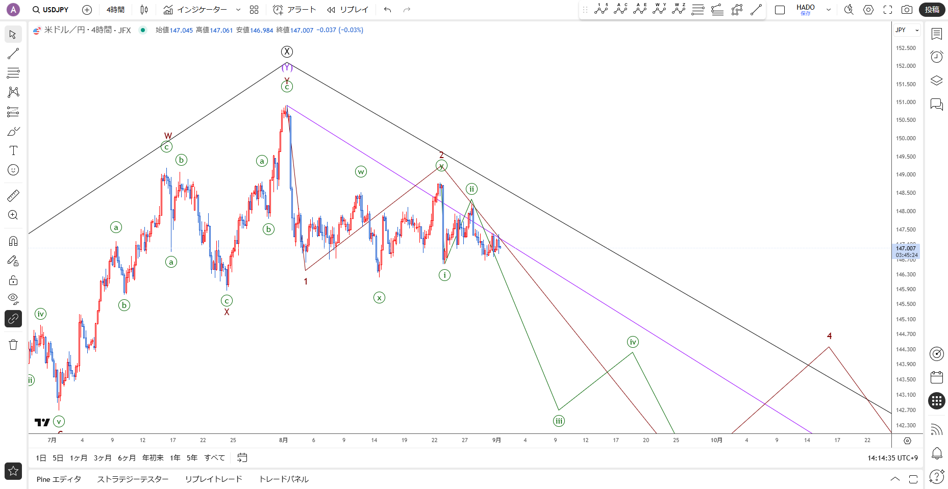 【流動性低下に注意】9月1日(月)ドル円のエリオット波動分析