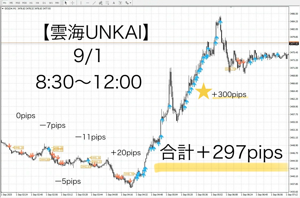 【雲海UNKAI】9月1日/東京時間3時間の過去検証で+297pips(勝率33.3%/PF13.9)今日からの新たな取り組み