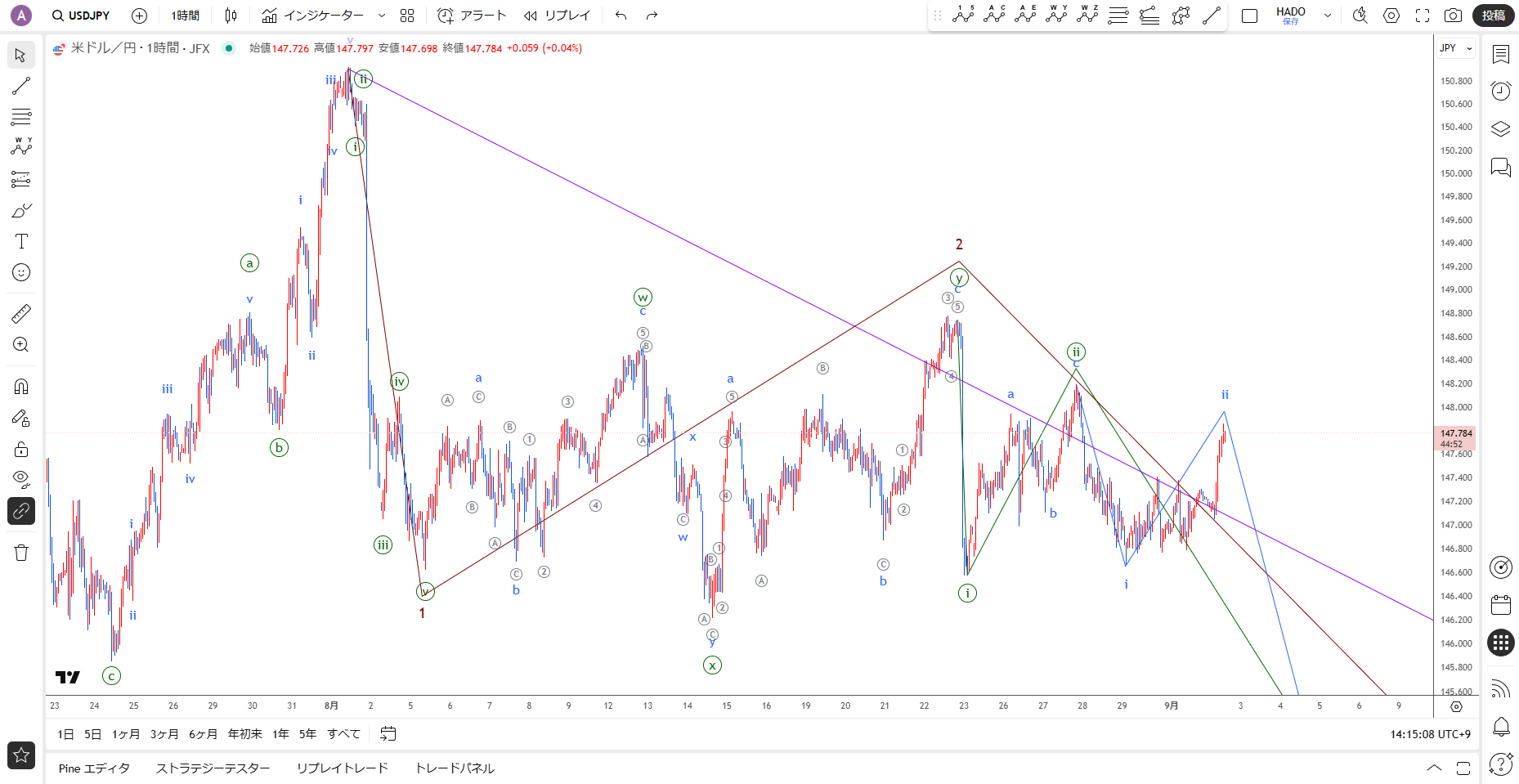 【方向感ない難しい状況】9月2日(火)ドル円のエリオット波動分析