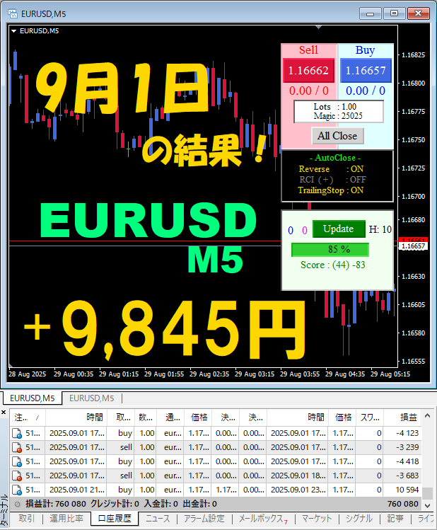 【前日の結果】EURUSD M5 『ATS-25』9月1日
