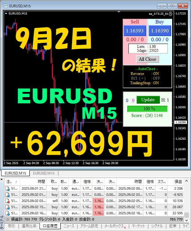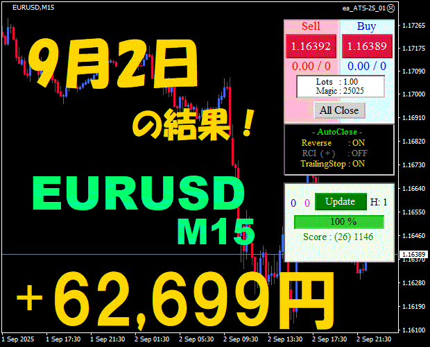 【EURUSD M15】前日の結果『ATS-25』 9月2日