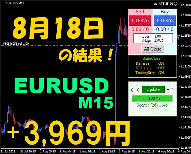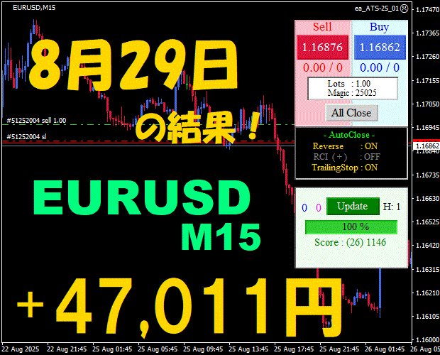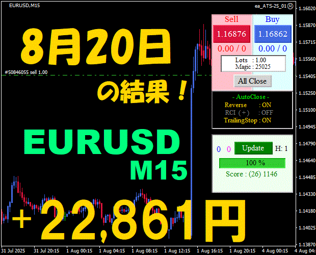 【EURUSD M15】前日の結果『ATS-25』 9月1日