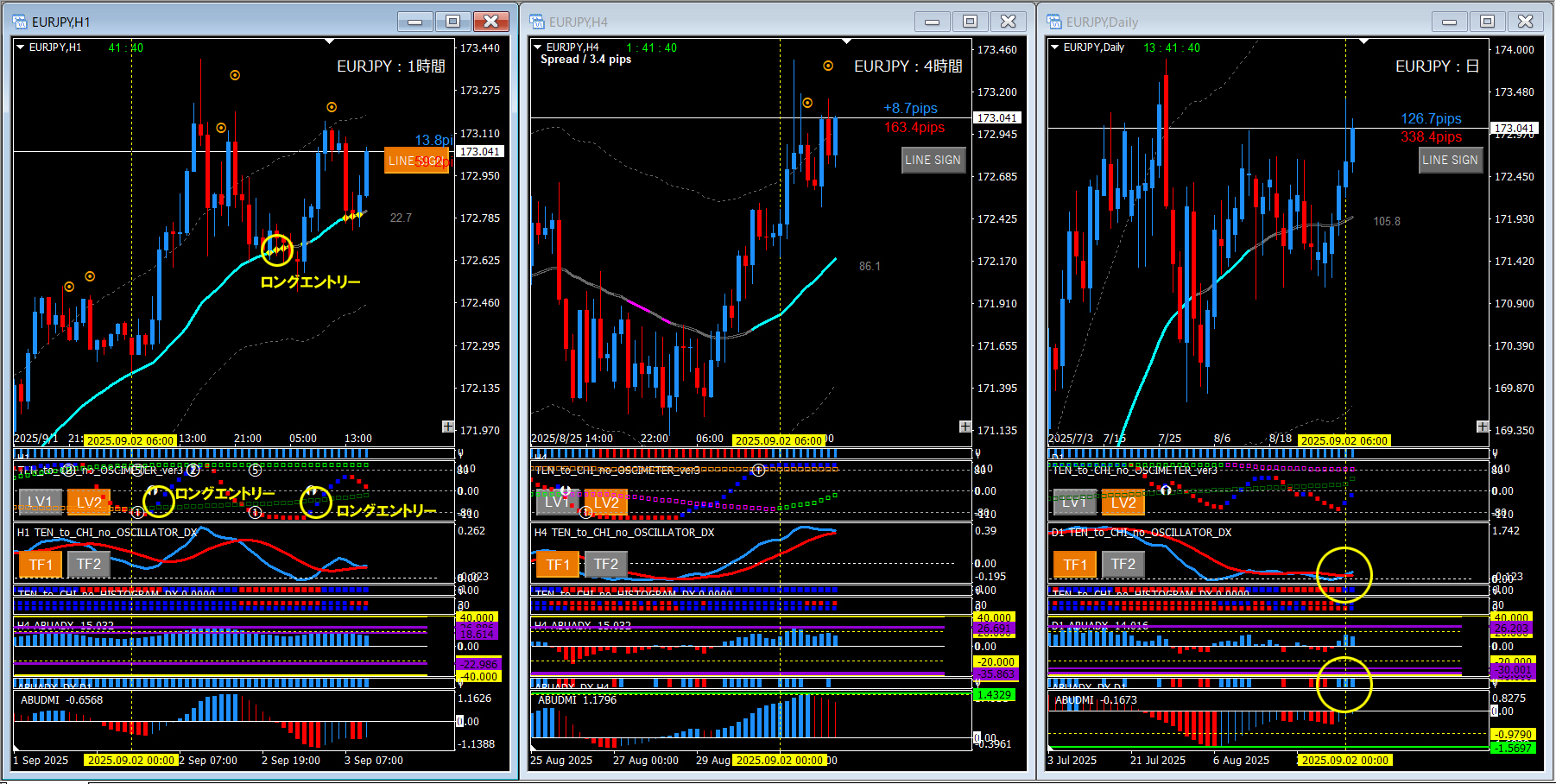 【2025年9月3日】天と地のインジケーターのデイスイング手法検証(ユロ円)