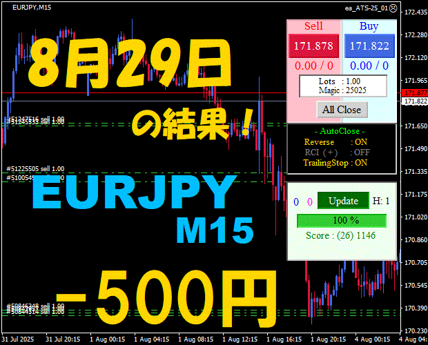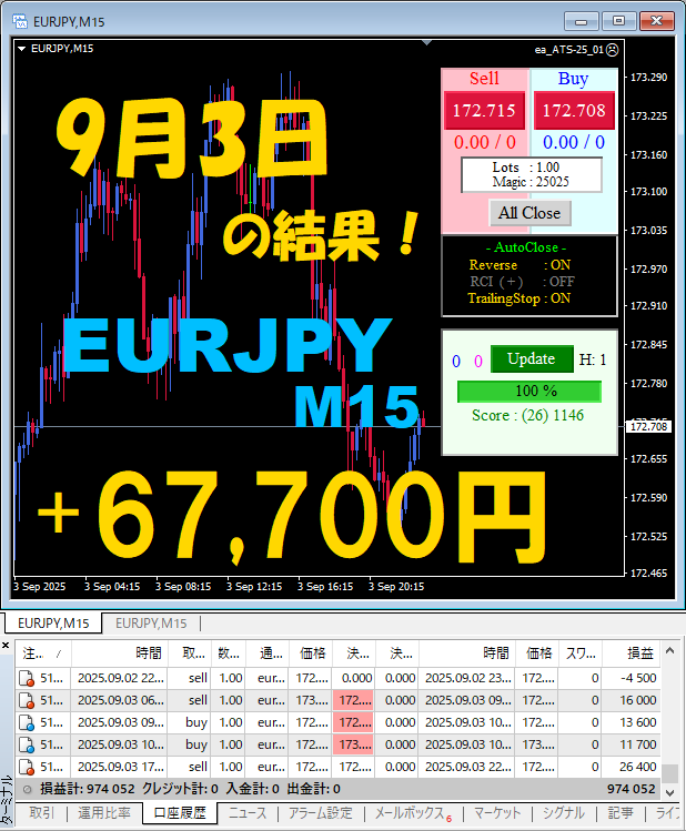 【EURJPY M15】前日の結果『ATS-25』 9月3日