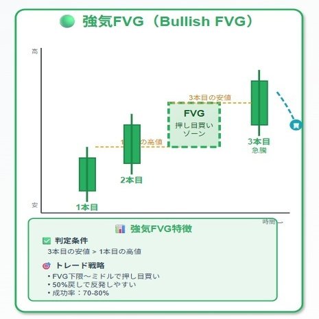 つまり、強気FVGは「機関が買い増しするために個人の売りを吸収する場」 と解釈できます。
