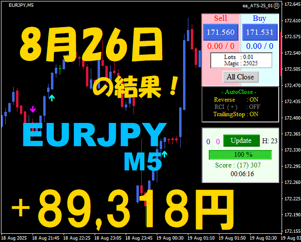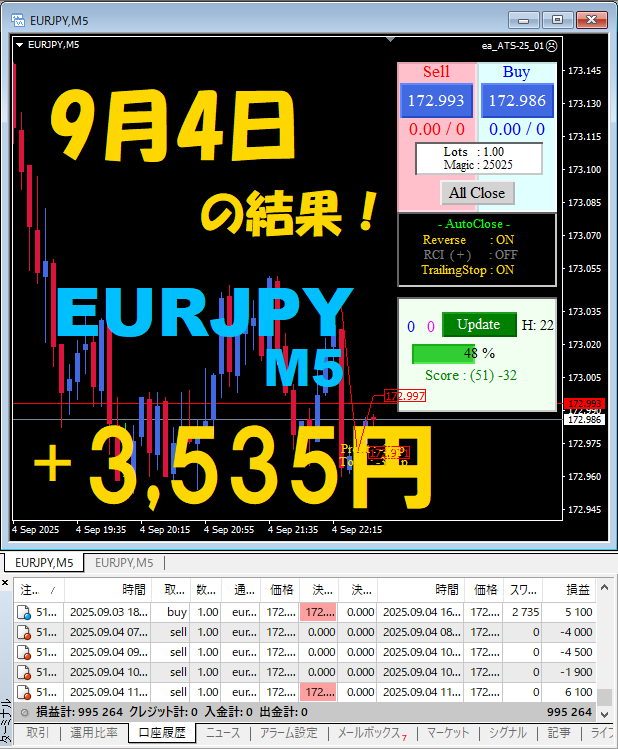 【前日の結果】EURJPY M5 『ATS-25』9月4日