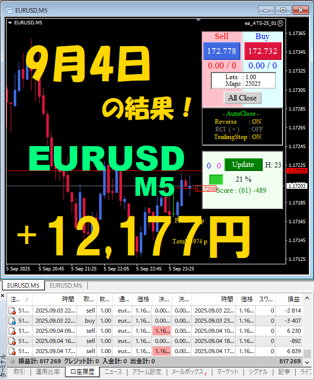 【前日の結果】EURUSD M5 『ATS-25』9月5日