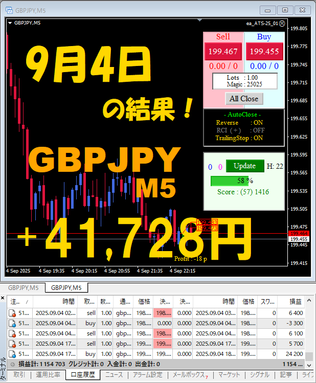 【前日の結果】GBPJPY M5 『ATS-25』9月5日