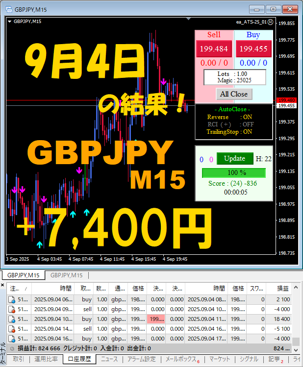 【GBPJPY M15】前日の結果『ATS-25』 9月4日