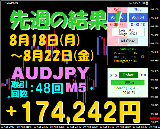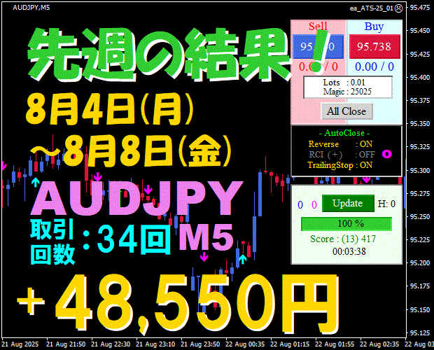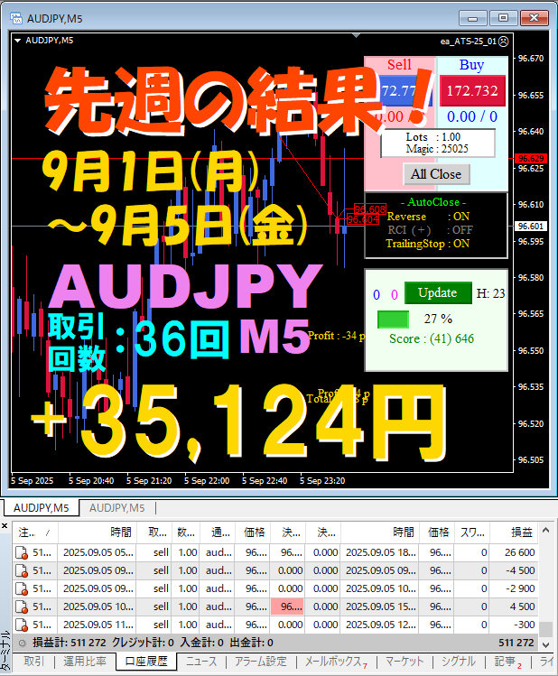 【先週の結果】AUDJPY M5 『ATS-25』9月1日(月)~9月5日(金)