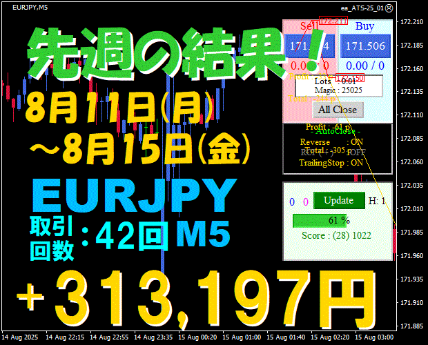 【先週の結果】EURJPY M5 『ATS-25』9月1日(月)~9月5日(金)