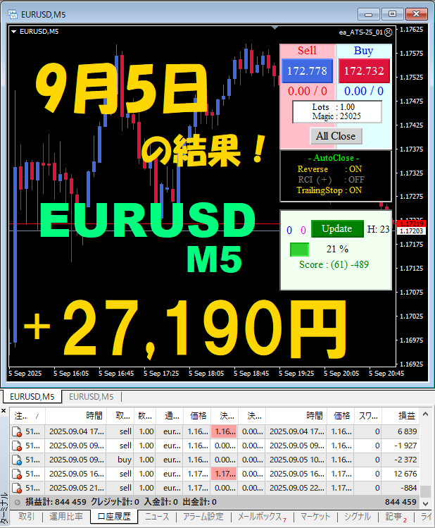 【前日の結果】EURUSD M5 『ATS-25』9月5日