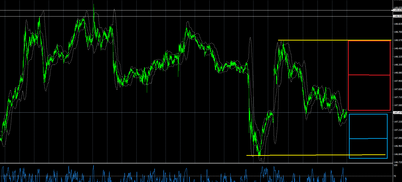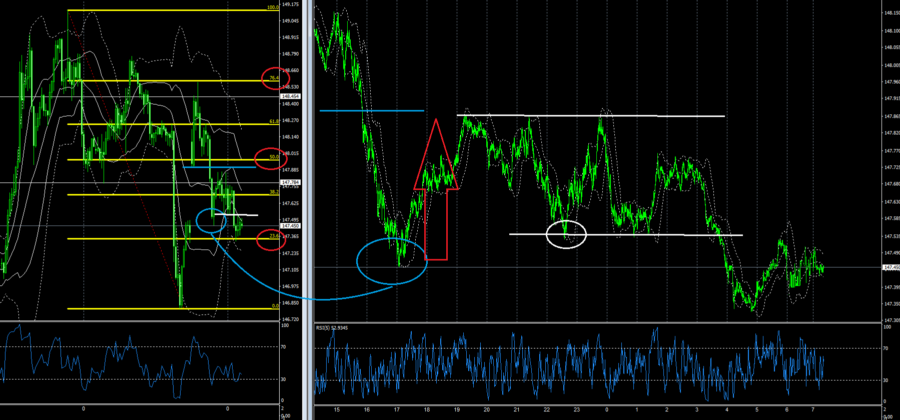 両建てユーザーの皆様に関しては、一旦底ついてヒゲ見てからポジでは遅いケースのありますので、14700タッチと同時にポジするとか、14700抜けでポジするとか、早めの行動が功を奏する場合があります。
