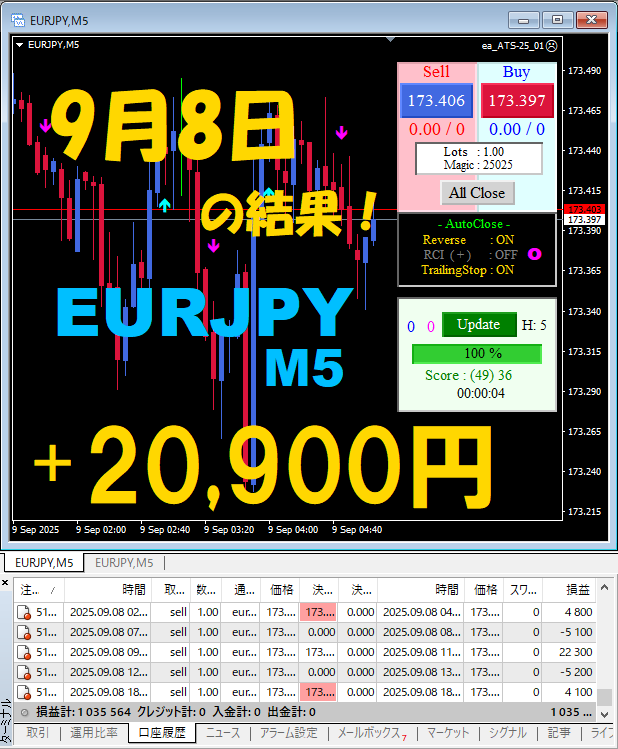 【前日の結果】EURJPY M5 『ATS-25』9月8日
