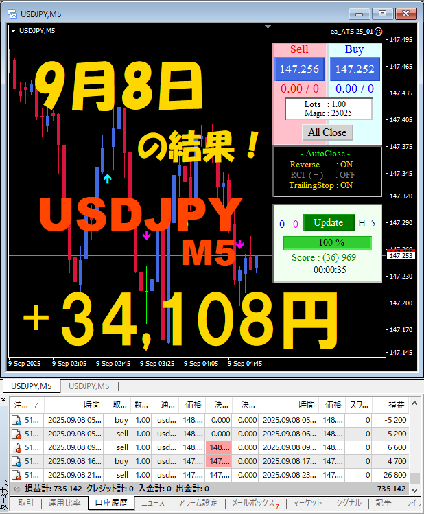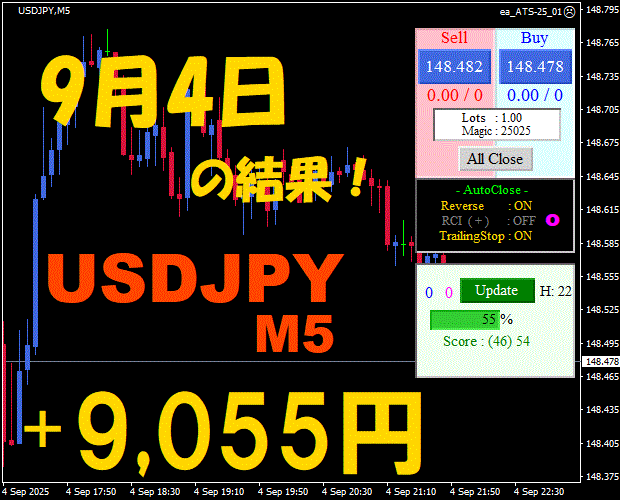 【前日の結果】USDJPY M5 『ATS-25』9月5日